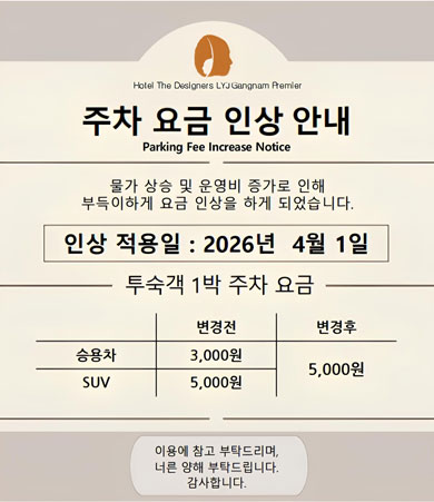 Tel. 프론트 02-567-4000 / 예약실 02-567-4340 Fax. 02-567-7093E-mail. reservation@thedesignersgroup.co.kr